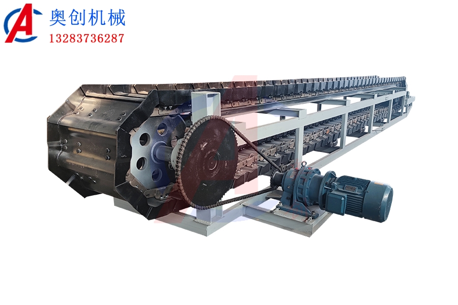 鱗板輸送機通過帶有滾輪的牽引鏈條與驅動鏈輪的輪齒相嚙合,驅動鏈條及固接在鏈條上的板帶一起沿著輸送機的...
